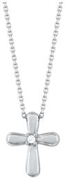 Kiriakos Gofas Λευκόχρυσος Σταυρός 14K με Αλυσίδα